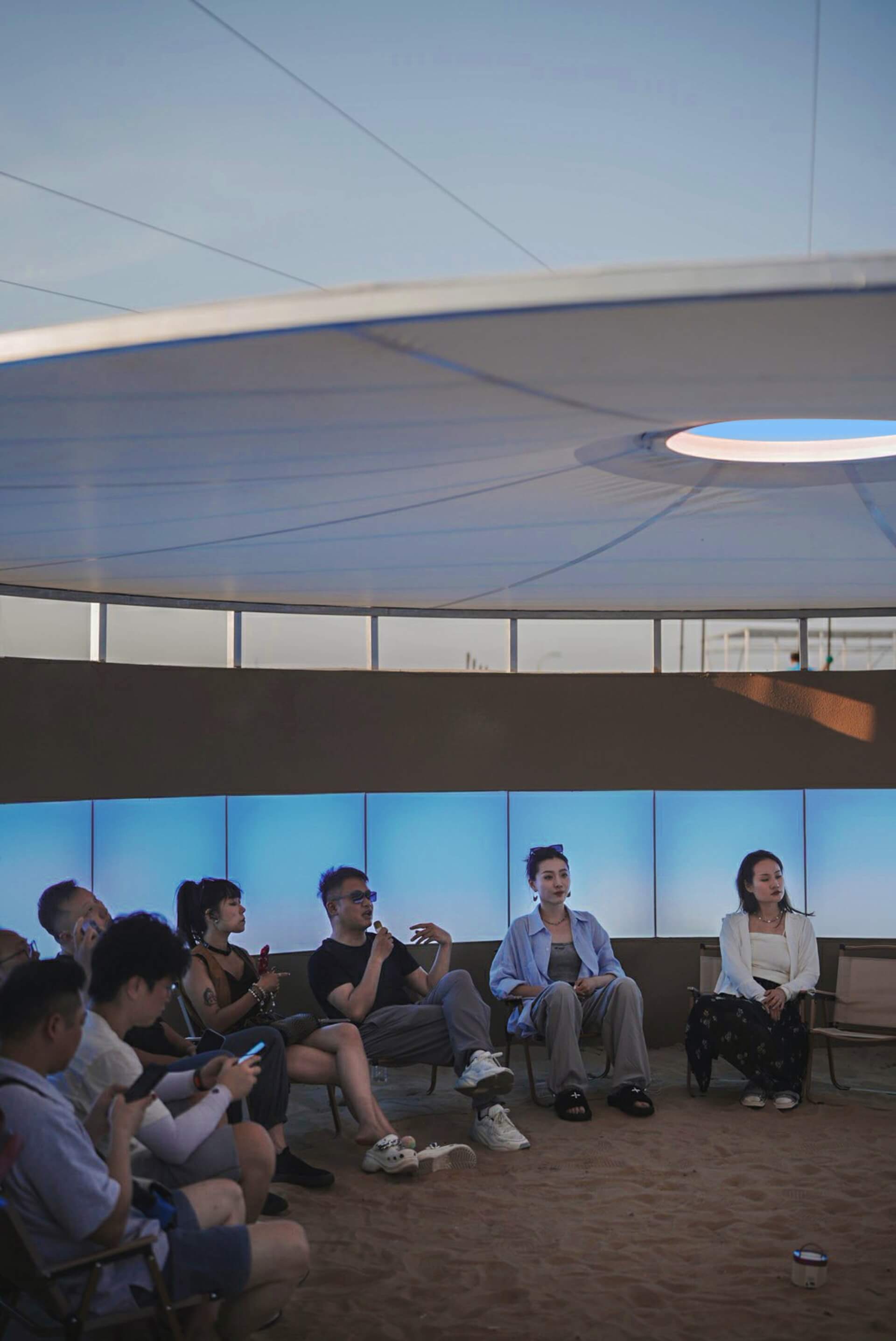 在“沙城之眼”內(nèi),歐普照明攜手藝術(shù)創(chuàng)作者共同開啟「與光對話」CHILL TALK環(huán)節(jié),圍繞“無形與有感”共同探討光在空間里的物理與情緒價值。